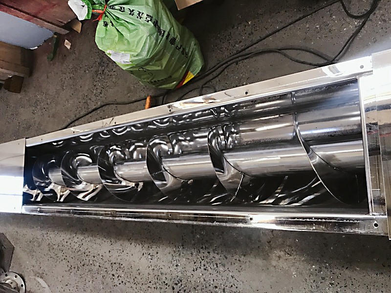 不锈钢U型螺旋输送机工作时,电机带动旋转的螺旋叶片将物料推移而进行输送,螺旋输送机旋转轴上焊的螺旋叶片,叶 片的面型根据输送物料的不同有实体面型、带式面型、叶片面型等型式。使物料不与螺旋输送机叶片一起旋转的力 是物料自身重量和螺旋输送机机壳对物料的摩擦阻力。